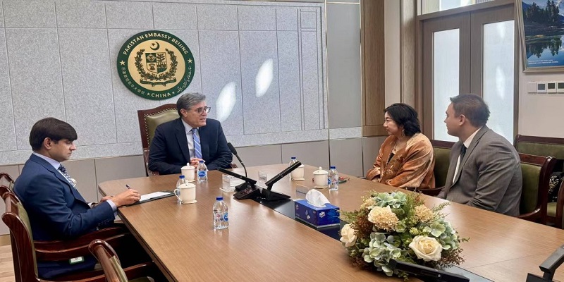 Khalil Hashmi, ambassador of Pakistan to China, recently receive Bai Yipeng at the embassy in Beijing.